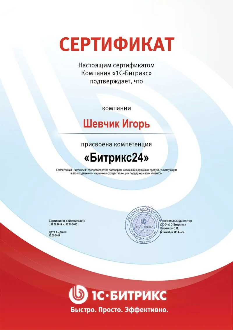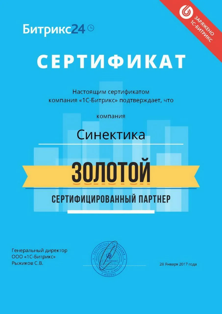 Мы — золотой сертифицированный партнёр компании «1С-Битрикс»